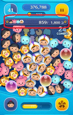ちなみに、帽子をかぶったツムをマイツムにしてなくても、サブツムで出てきたら消去数に加算されます。